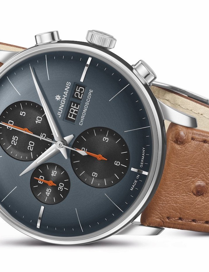 There are watches that show the time, and there are watches that show character. The new Meister Chronoscope from Junghans does both. And just like its wearer, it combines individ- ual qualities to create a distinctive identity. In its design, the classic elegance of the Meister line meets the sporty dynamics of a chronograph and a stylish expression in colour and shape.