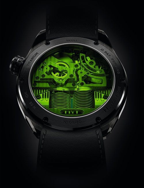 Neuchâtel-based HYT proudly unveils a singular take on the lunar seas with two new models, evocatively named “Ghost” and “Desert”. The hyperwatch aesthetic presents a striking contrast between the engineering prowess of fluidic time and the delicate craftsmanship of miniature painting on one of watchmaking’s most fantastical complications – the Moon Phase.