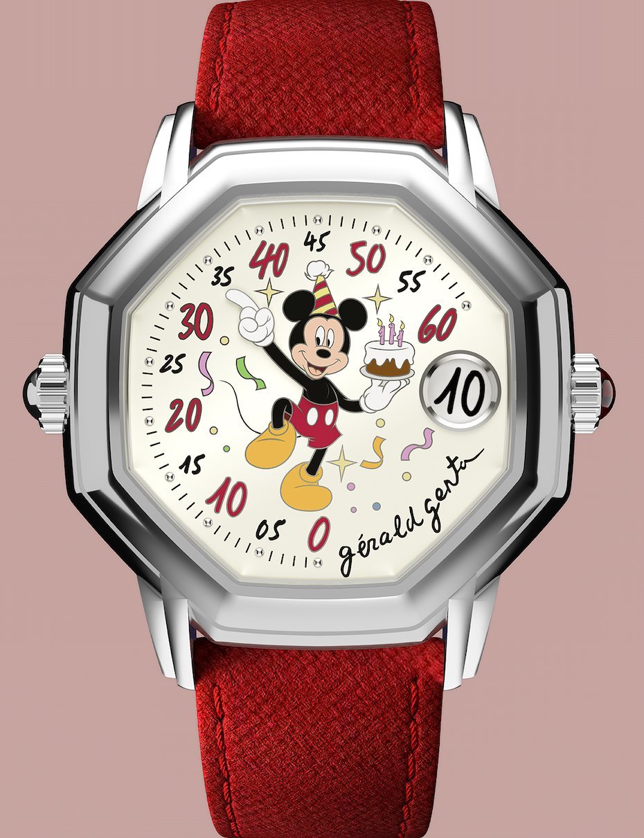 For its very first participation in Only Watch, the Gérald Genta Maison of High Watchmaking is unveiling a minute repeater watch with Disney’s Mickey Mouse playfully indicating the time while holding a birthday cake aloft to mark Disney’s 100th anniversary and Only Watch’s 10th edition.