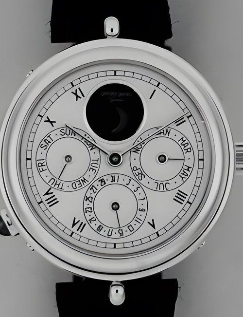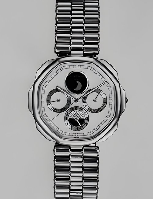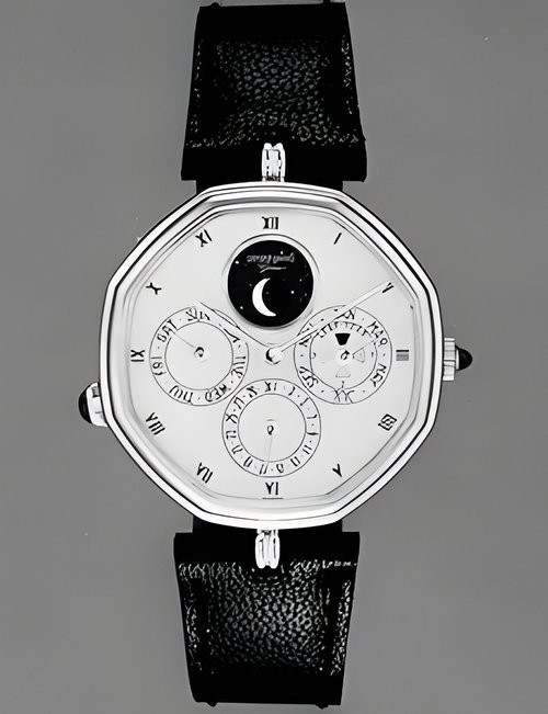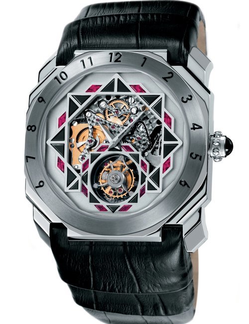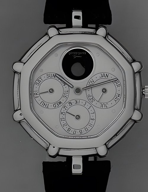 Octagonal white gold case with alternating polished and satin-brushed surfaces; white gold minute repeater push button at 9 o’clock