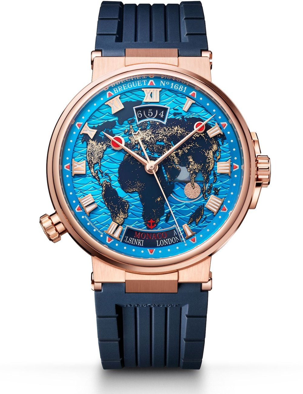 The Manufacture Breguet is repeating its participation in the Only Watch charity auction with a one-of-a-kind version of its Marine Hora Mundi model. The unique piece features the Breguet-patented mechanism that is the only device serving to change time zone at a single click. In a nod to the Only Foundation, the city of Paris has been replaced by the principality of Monaco in red.